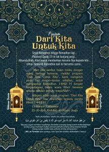 Panitia santri juga menghasung teman-teman untuk berinfak ifthor (buka puasa). Karena panitia setiap harinya menyediakan 344 porsi untuk buka santri putra, sehingga dibutuhkan biaya yang cukup untuk menu buka puasa bersama. Berikut ini adalah pamflet infak ifthor dengan program dari kita untuk kita.